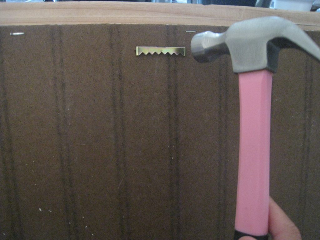 Next, I hammered a saw tooth hanger through the back.