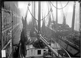Continuing with the efforts of his and Augusts, Herman now had a business without a partner. Herman sailed further and further north with each passing year. This allowed him to purchase better quality trees at a lower cost but this also made Herman and his crew incur poor and unpredictable weather the further north they sailed. Over the next few years Herman had lost one ship and almost lost another. This triggered him to purchase larger ships (the largest measuring 130 feet long and 26 feet wide.) With the larger and more stable ships, Herman went as far north as the Soo Canal to purchase his trees from the Indians. Eventually, he would hire his own crew to cut and prepare the trees for the journey back to Chicago. In 1910 Schuenemann had established the ” Northern Michigan Evergreen Nursery” whose address was given as the “SW corner Clark Street Bridge.” This allowed him to lower his expenses by selling his cargo directly from the deck of his ship. No longer would Capt. Schuenemann pay laborers to carry trees to store owners and local grocers. He was trying to eliminate as much of the middleman as possible. While Herman sold trees and greens on deck, his daughters worked below by the warmth of the cabin stove making wreaths out of cut greens. In order to even further lower his expenses, sometime between 1910 and 1912 Herman purchased 240 acres in upper Michigan. In salaries for tree cutters, crew, provisions, towing fees and miscellaneous expenses, a single trip would have cost him approximately $3,000. Any failure to return with trees would leave Herman flat broke. In order for Herman to cover all of these expenses as well as make the bulk of his annual income, he now had to transport as many trees as possible with each journey.