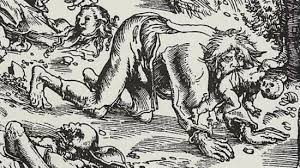 Thiess confessed being a werewolf, saying his nose had been broken by a man named Skeistan, a witch who was dead at the time he had struck Thiess. According to Thiess’ testimony, Skeistan and other witches were preventing the crops of the area from growing. Their purpose for doing this was to carry the grain into hell. To help the crop to continue to grow, Thiess with a band of other werewolves descended into hell to fight the witches and recover the grain.